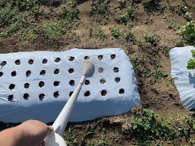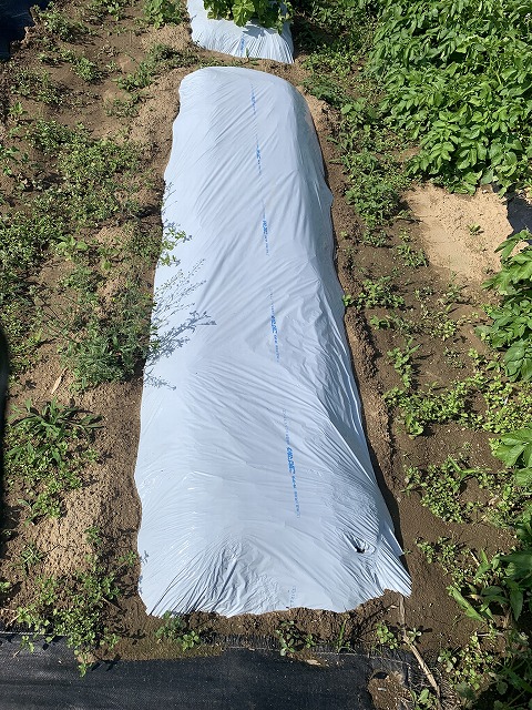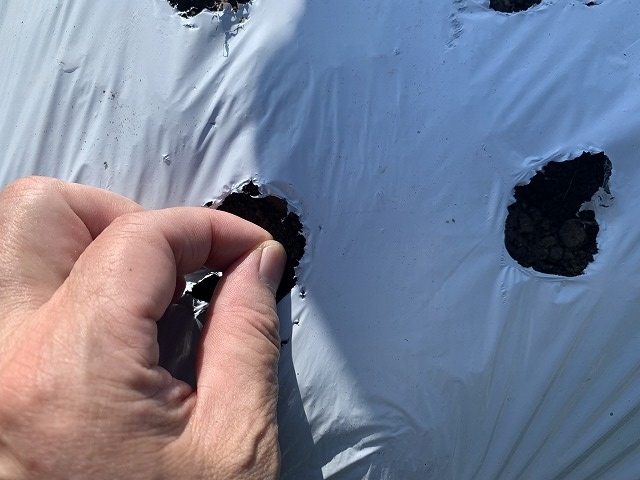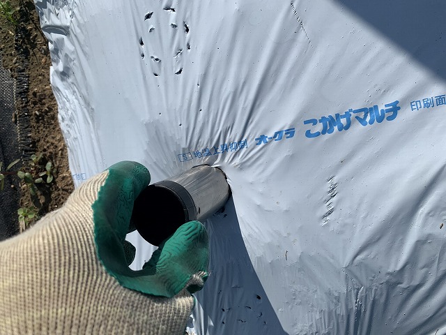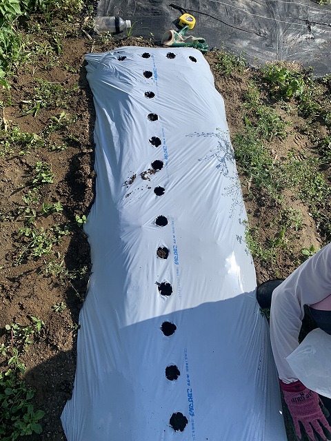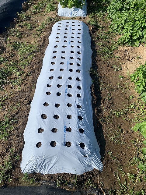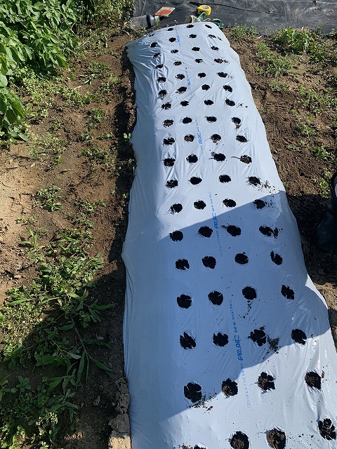 畝は既に5月の連休に白黒マルチで作ってあります。