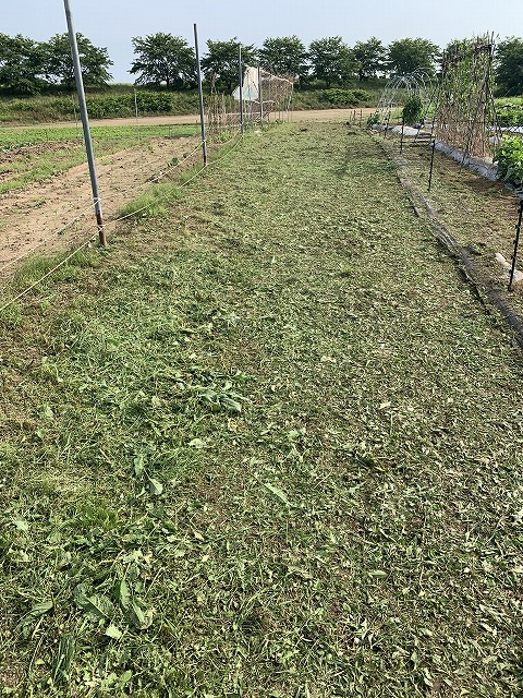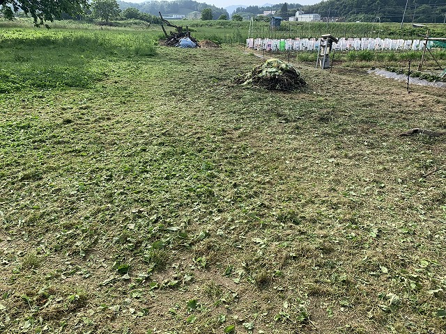 土曜日の朝は、前日の金曜日に刈り残した畑の草を刈ります。