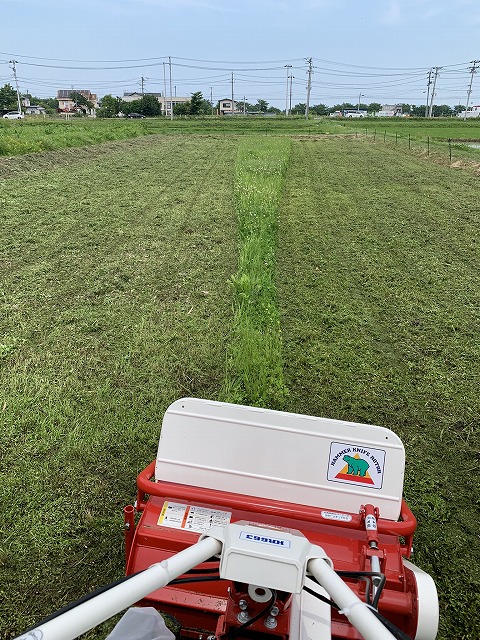 草刈りはもう少しで終了です。直角に回転する角が少し残るので、そこを刈りこみます。