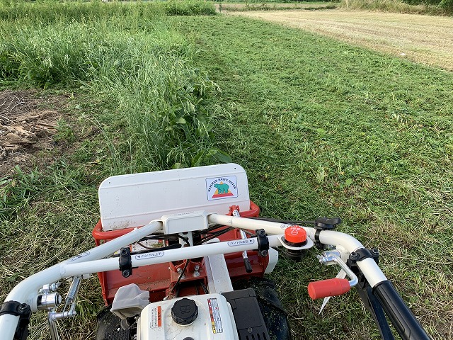 続いて木曜日は、家の向かいの休耕田の草刈りです。