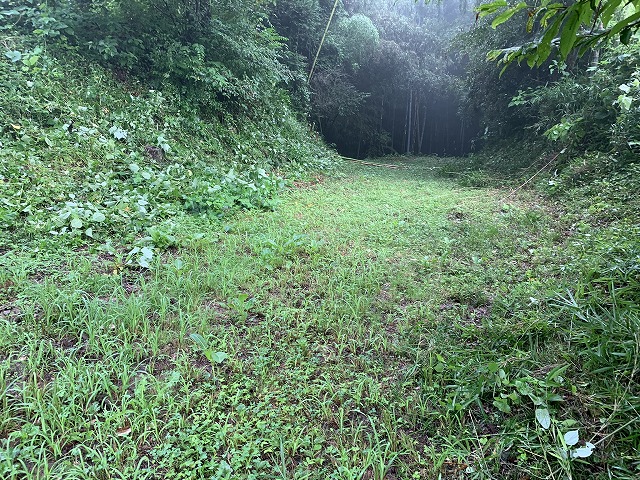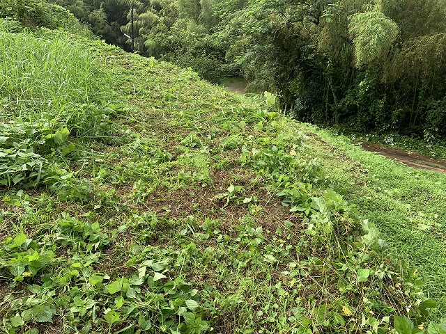 先日、二の丸の南斜面に接する場所の草刈りが出来ず、その後雨が続いて、斜面の草刈りが出来ませんでした。