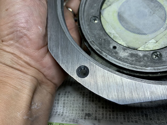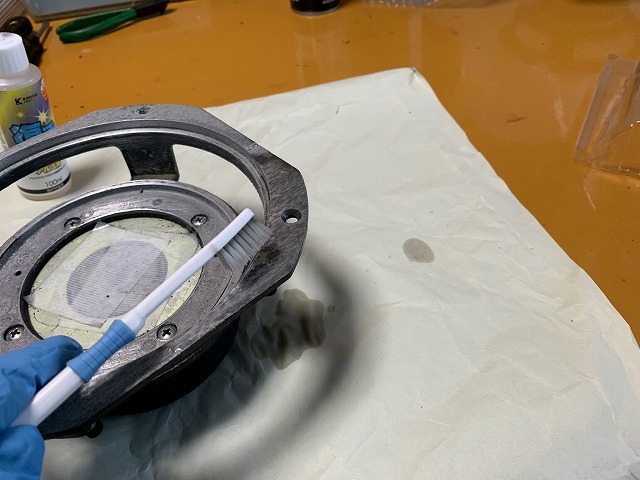取り付けのフロントパネル部は錆付いていますので、リコーンする前にこの取り付けの前面フレームの錆を除去する必要があります。