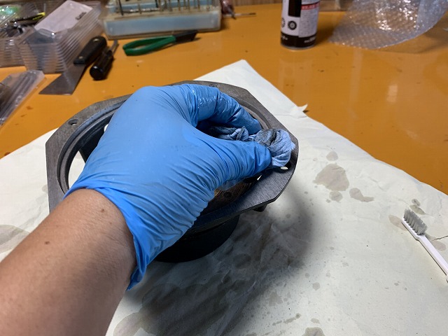 ピカールで磨いた部分の洗浄を行います。
