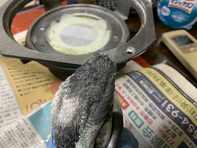 一個磨いただけで、拭き取りのタオルはこんな感じで真っ黒です。