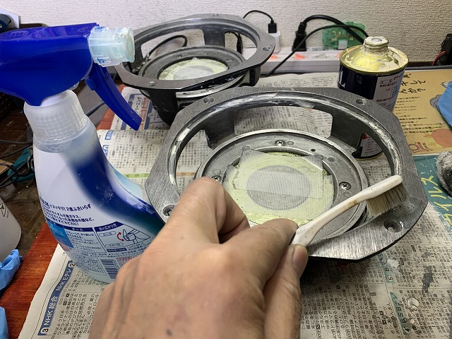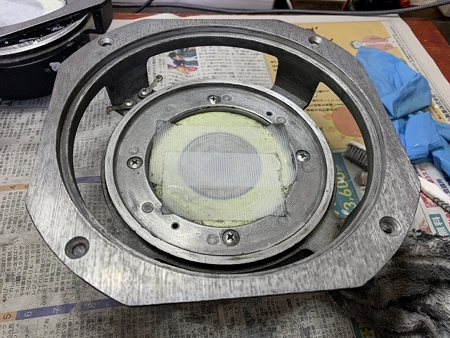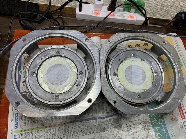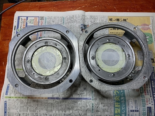 さて、今日はオーディオライフに戻ります。今日の記事は『JBL フルレンジスピーカー『LE-8T』のリコーン』の話で、今回はその2となります。前回は、ボロボロになったコーン紙やボイスコイルを取り出し、残った接着剤やエッジの残骸を取り除きました。今回は、錆付いたLE-8Tの取り付けフレームを磨きます。