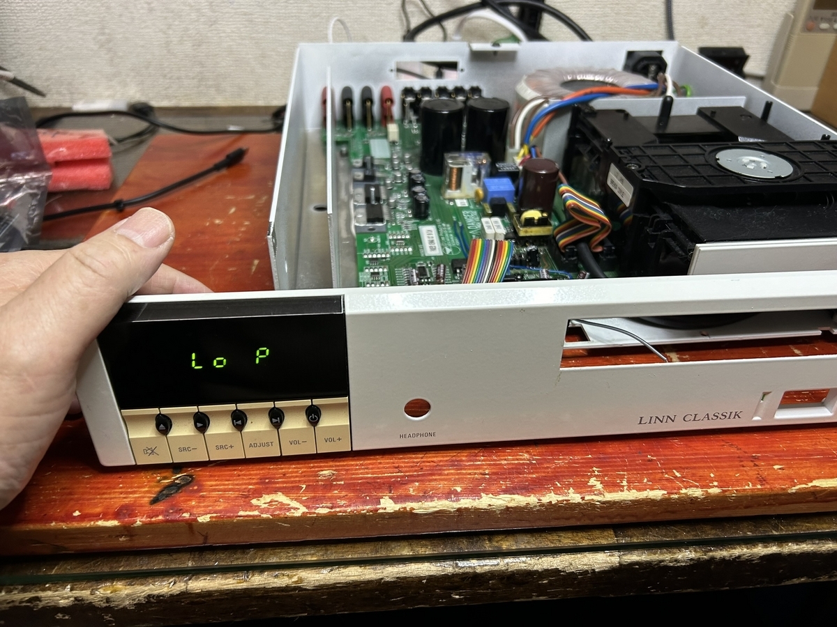 すると、故障メインボードと正常CDユニットでLo-Pの表示になるので、メインボードが故障している事が決定づけられました。