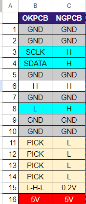 結果下記の通りで、I/Fコネクタの信号の何カ所かに違いがあるようです。