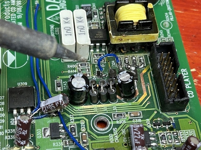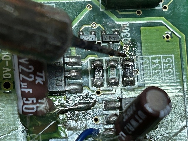 全ての理屈が合い腹落ちしましたので、ジャンパー加工と、メイン電源を強制的にONさせていた加工の除去、そして取り除いていたチップ抵抗を元に戻します。