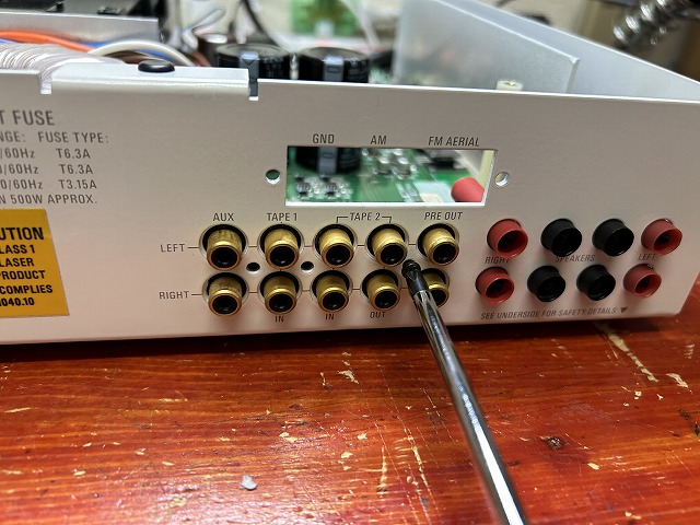 最後にスピーカー出力と、プリアンプの出力を確認します。