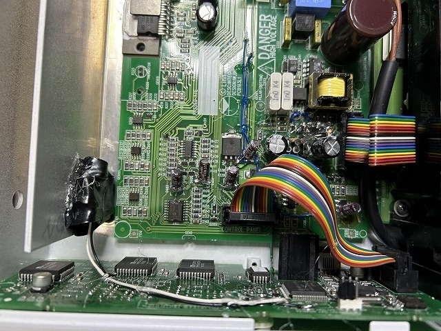 続いてメイン基板を故障している本体に取り付け、交換実験を行います。