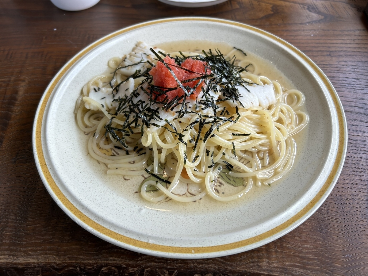 さて、今回のメインですが、何時もはクリームパスタなどを注文するのですが、今回あっさりと明太子とイカの和風パスタを頂きました。
