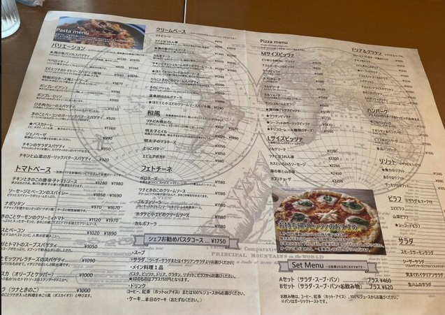 これは、下記のメイン料理から1品に、スープ、サラダ、ケーキ、ドリンクがついて1750円です。