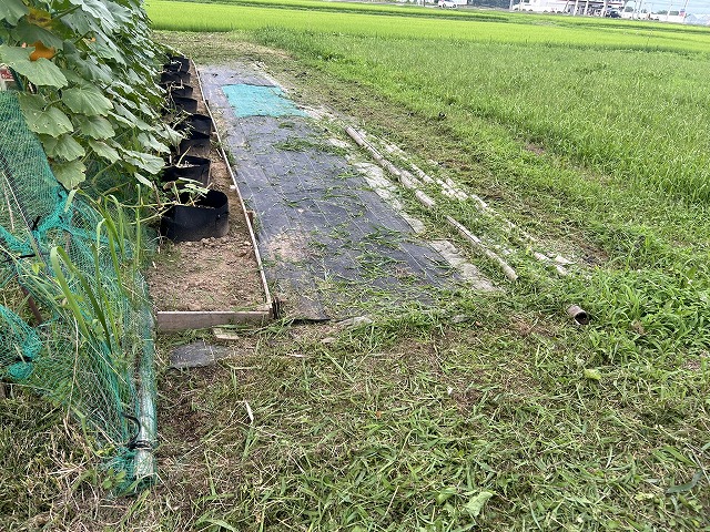4.ハウスの残骸の中の草が一番伸びています。この間かったばかりなのにね