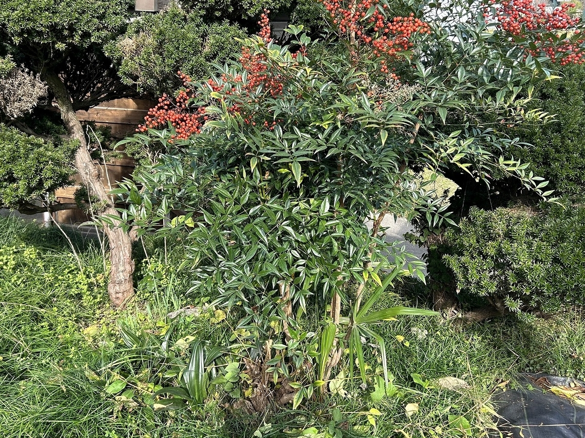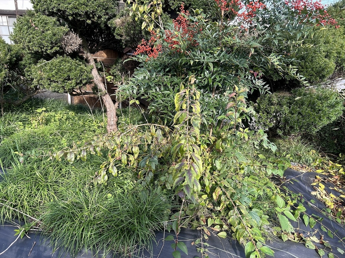 なんてんや竹、そして正体不明なとげがある木が蔓延っています。