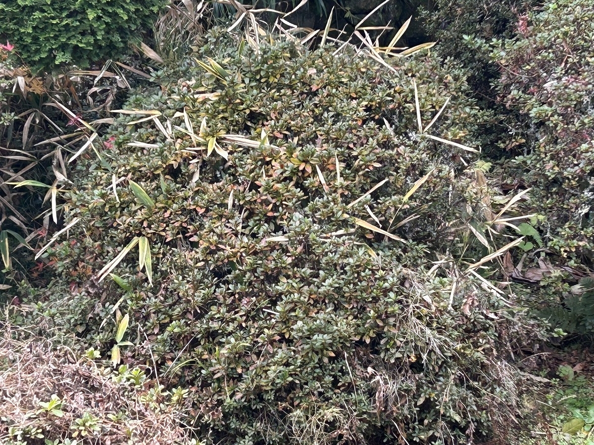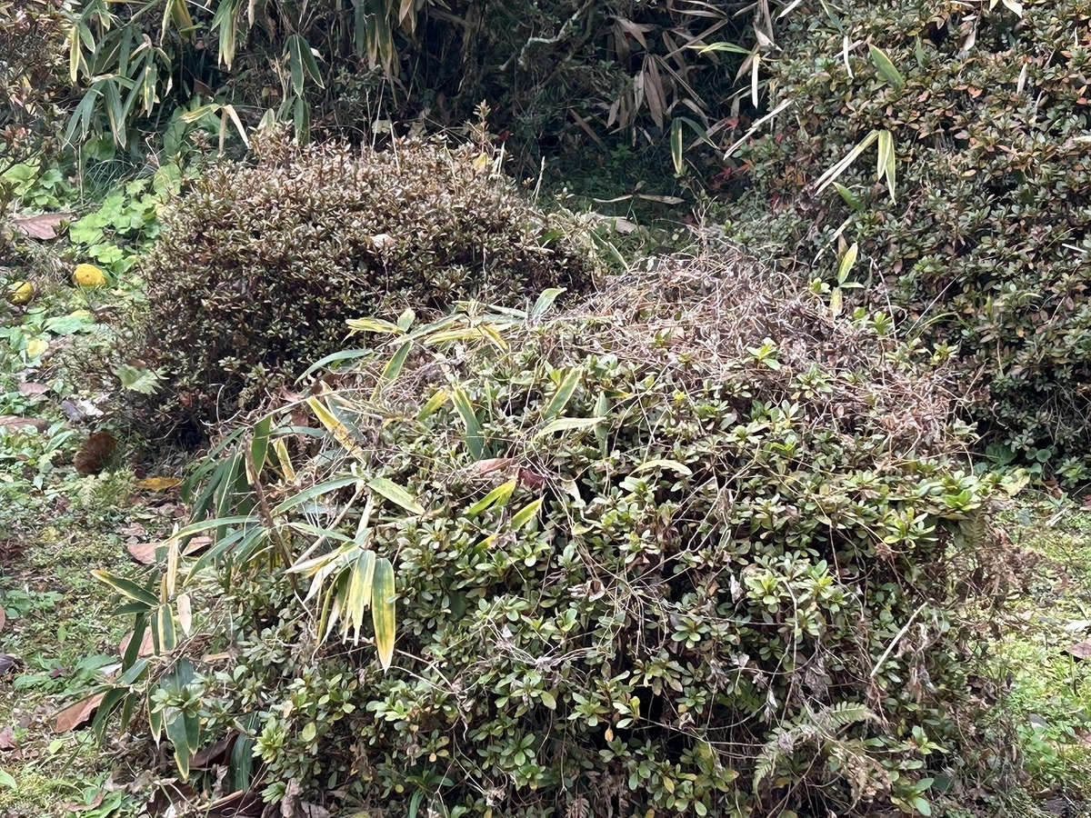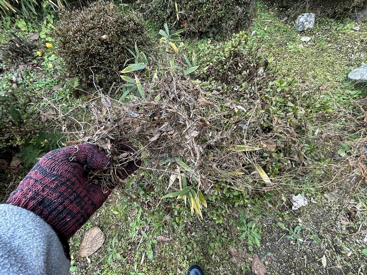 剪定の前に、つつじの上に蔓延った弦やつつじの中から生えた笹の葉を取り除きます。