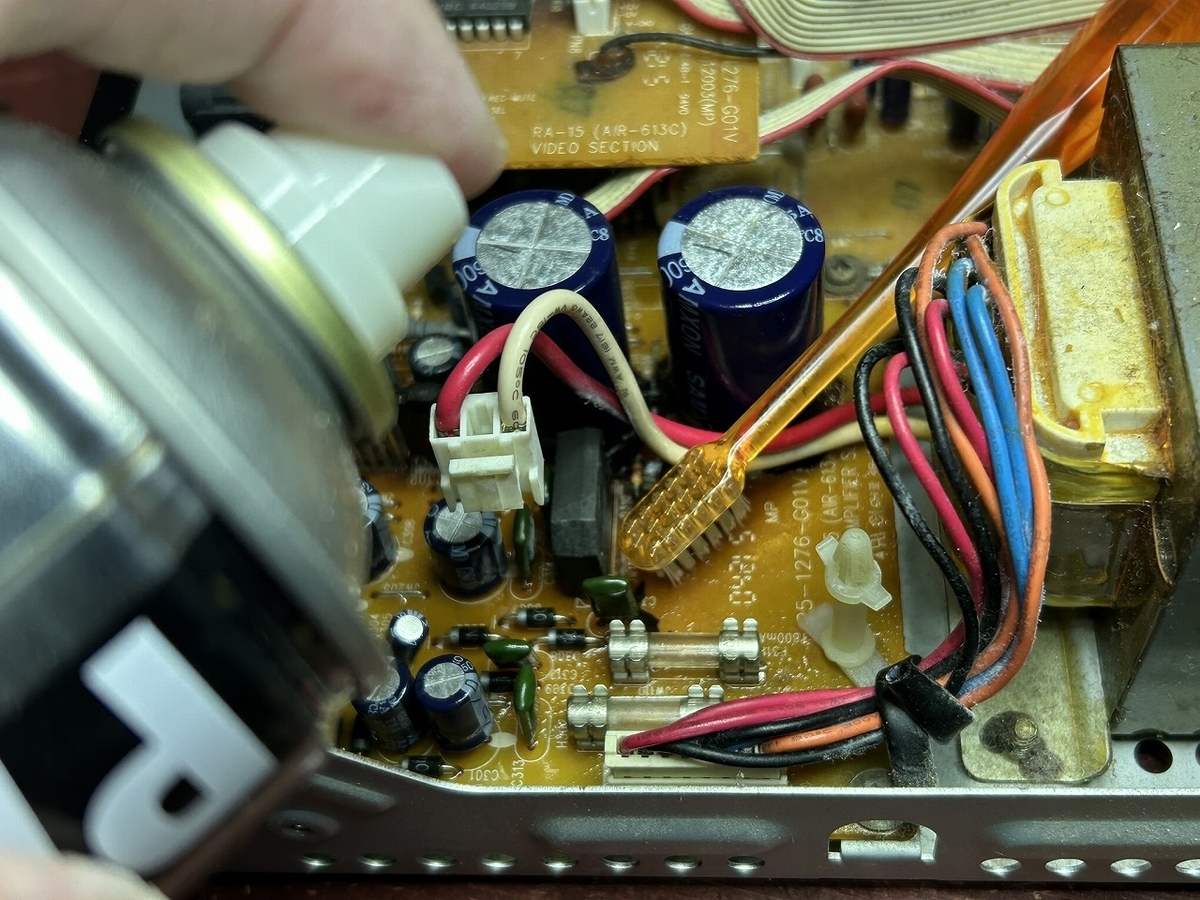 本体内部はすこし埃が堆積しています。依頼者からクリーニングも依頼されているので、本体内部のクリーニングを行いました。