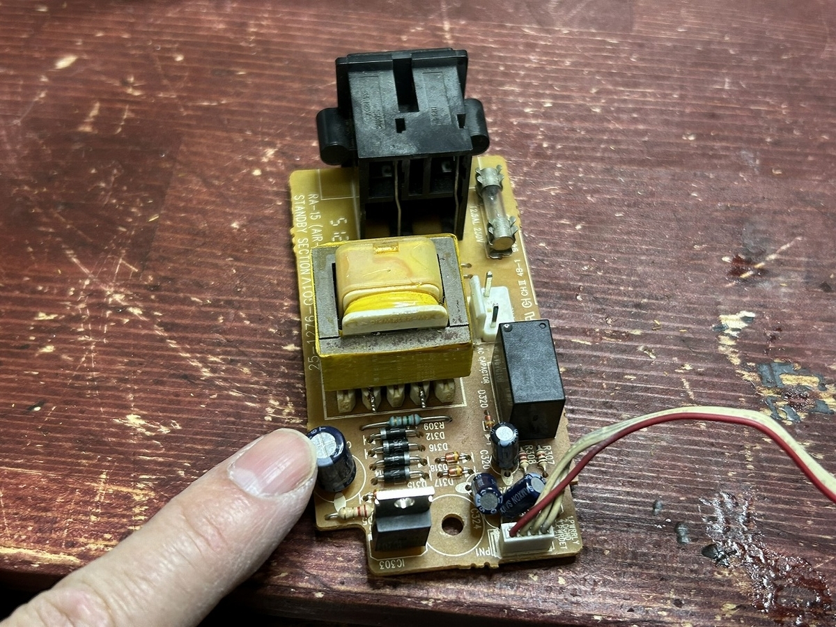 やはり、電源が入らないという故障は、この基板の電解コンデンサが原因だったのですね。