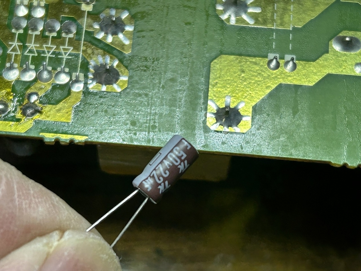 そして最後は22μFの電解コンデンサです。