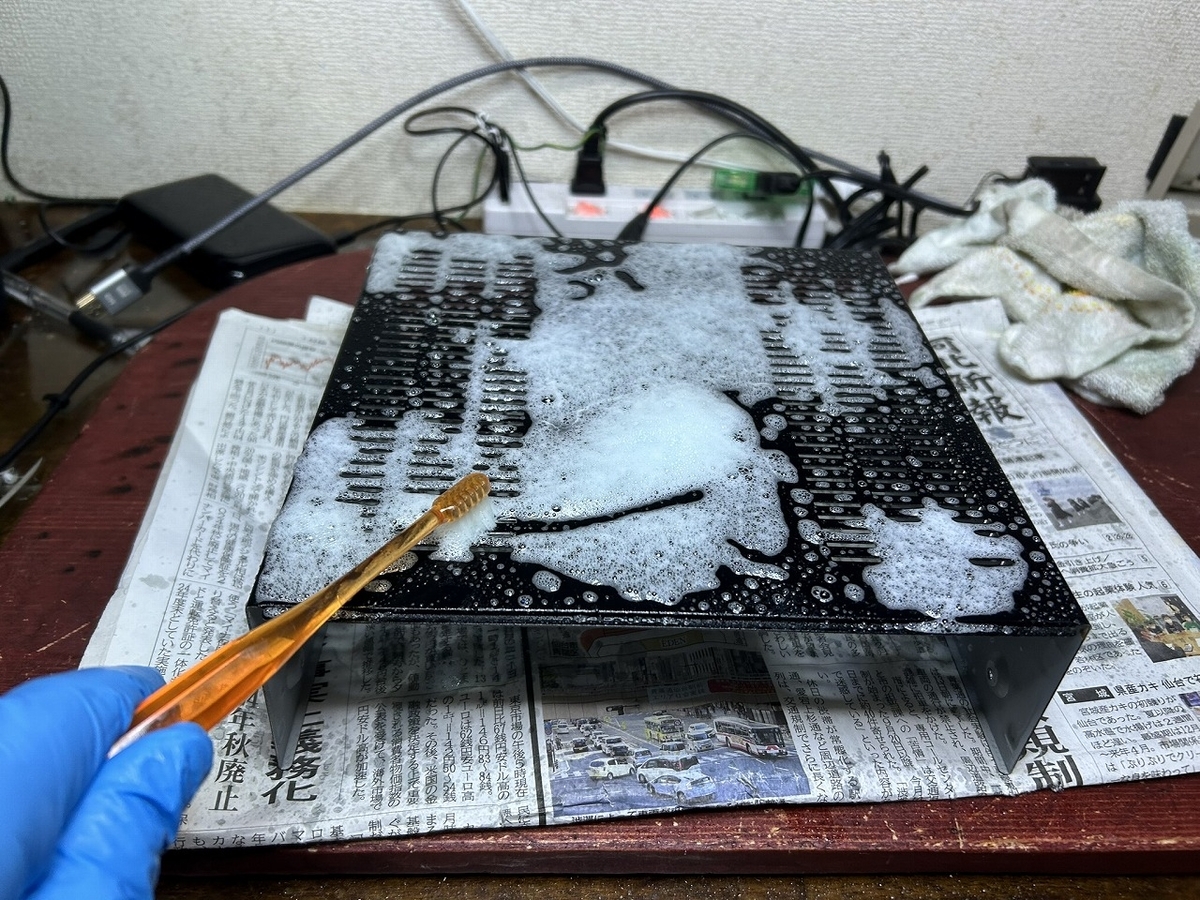 電解コンデンサの交換後は、基板を洗浄します。