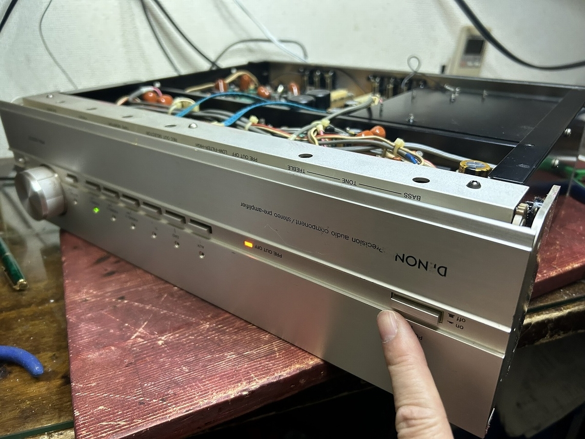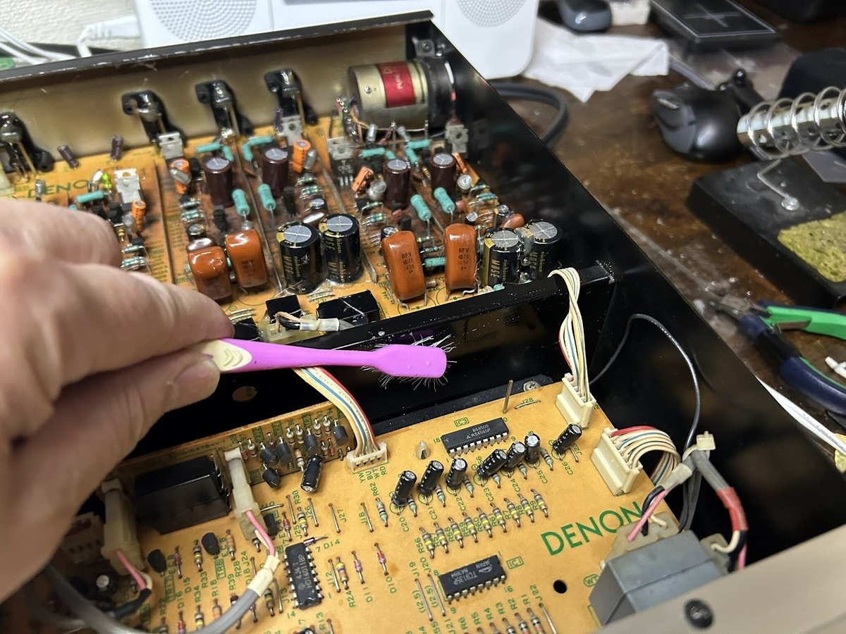 さて、今日の話題も『DENON プリアンプ PRA-2000Zの修理』でいよいよFINALです。これまで、ヘッドアンプ、そしてイコライザアンプの基板を再はんだして、且つ基板上のコネクタの洗浄を行ってまいりましたが、L側の接点不良の状況は解消されません。今回は、イコライザアンプにある部品で接点不良になりそうなものにフォーカスを当ててみたら、そこか思わぬ発見がありました。