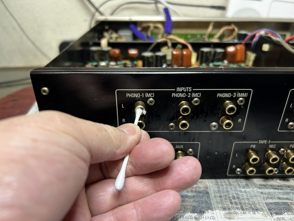 3)RCAコネクタの接点の洗浄