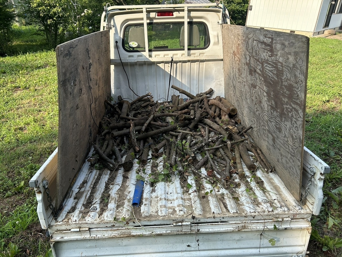 それでは樫の木の残骸を軽トラックに積み込みます。