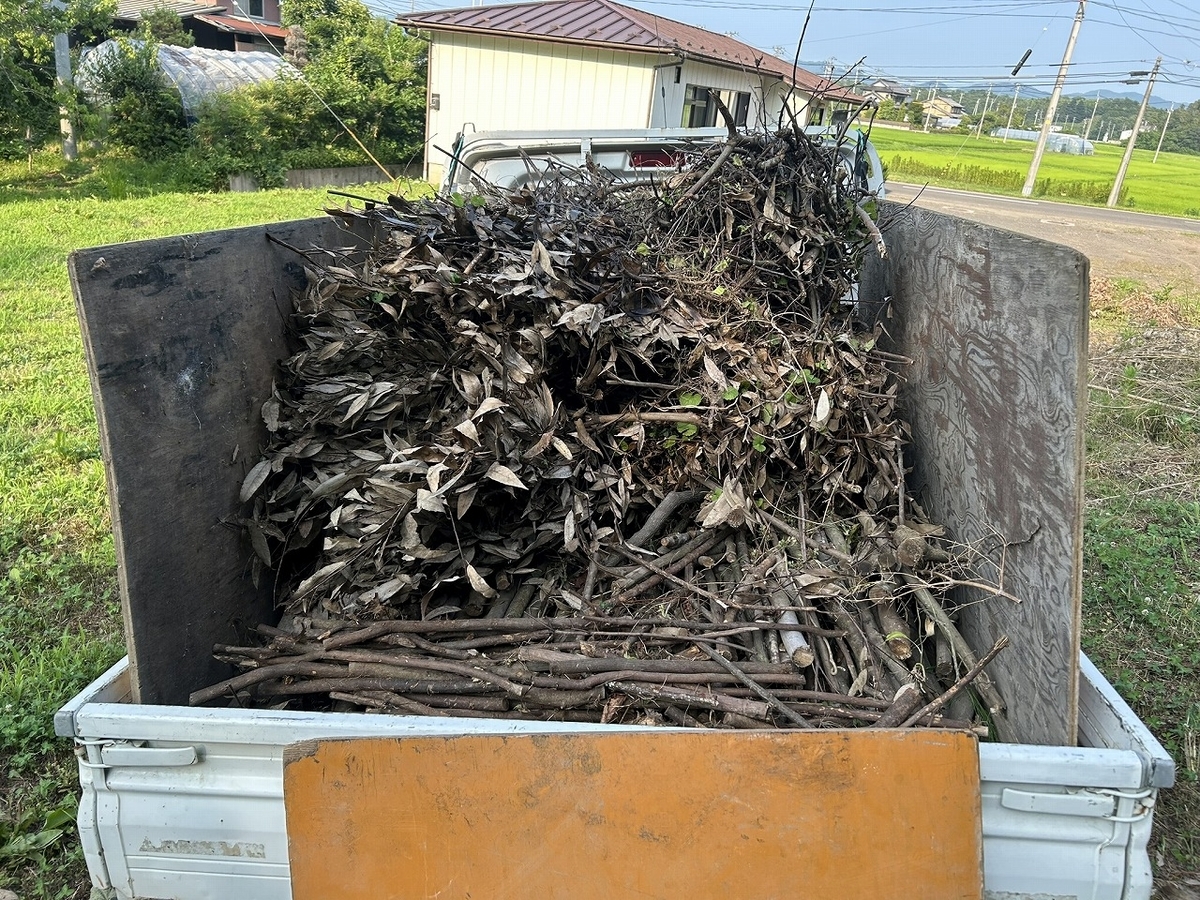 最後に葉っぱのついた枝の1/3を積載し一回目の運搬です。
