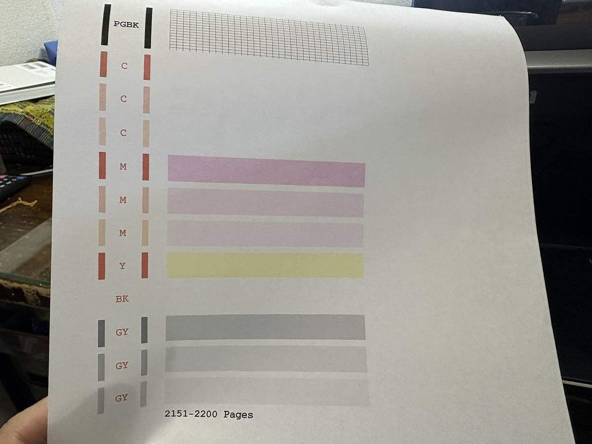 全てのインクをこの互換品に装着して、更なる強制クリーニングを行ったところ、やっと大容量インクヘッドでも、印字が出来るようになりました。