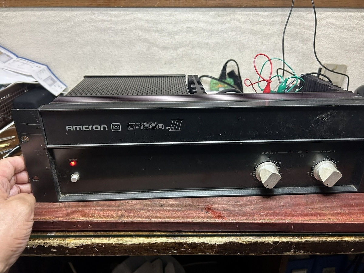 これが4年前、TADのウーファーを駆動するためにジャンクで落札したAMCRON(CROWN)のD-150AⅡです。Tomはこのアンプをジャンクで15000円くらいで落札しました。それを今年の夏に修理を行い、見事復活させました。