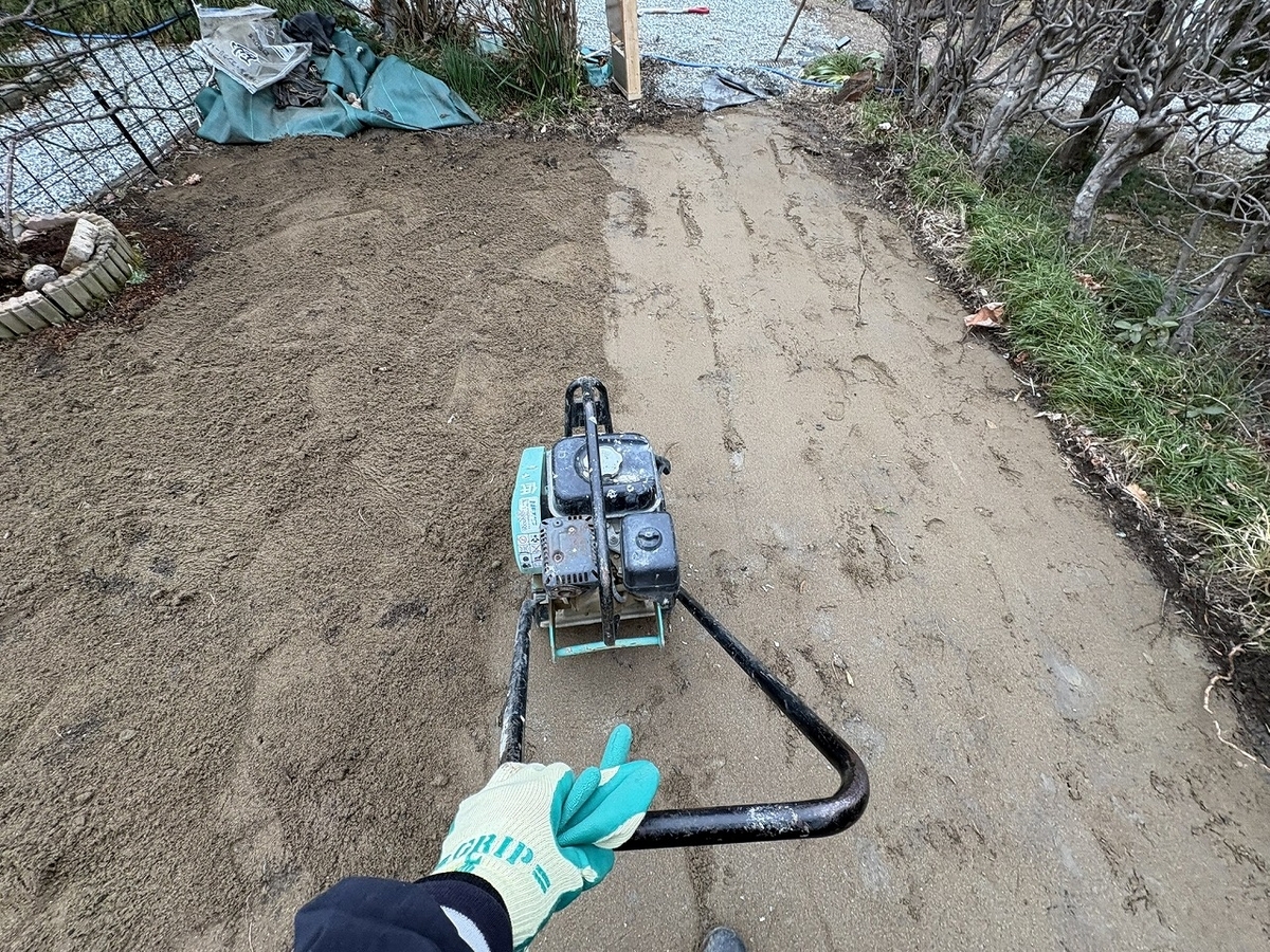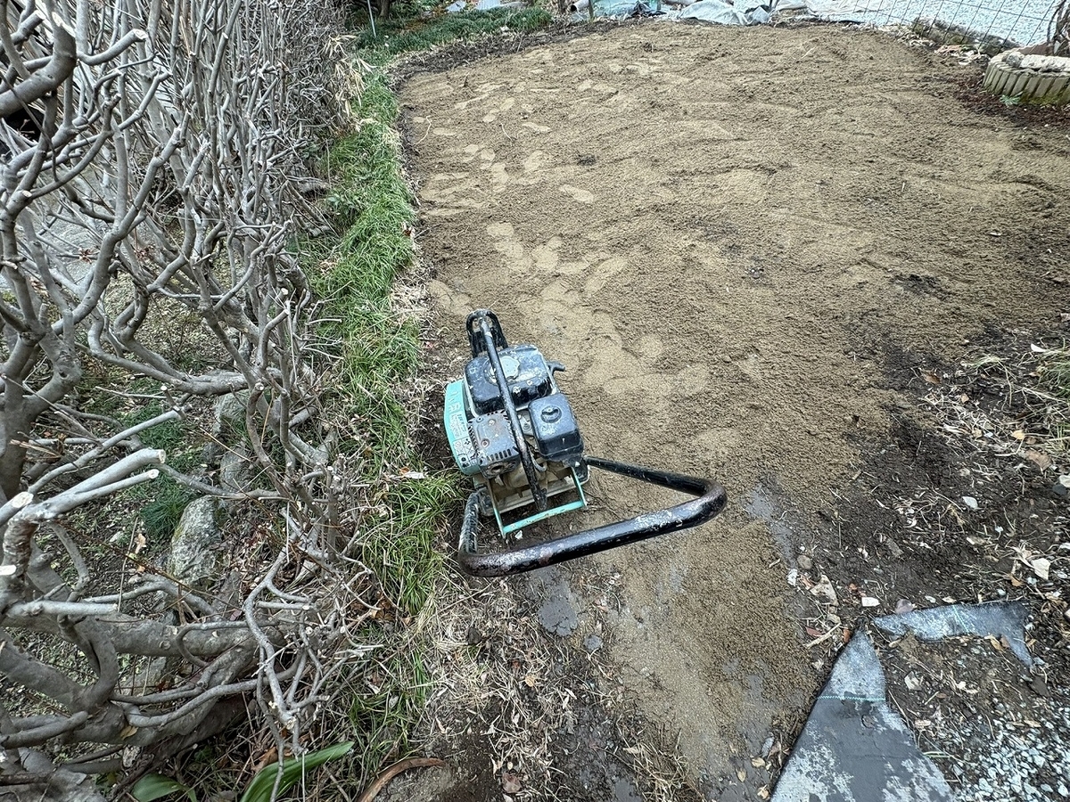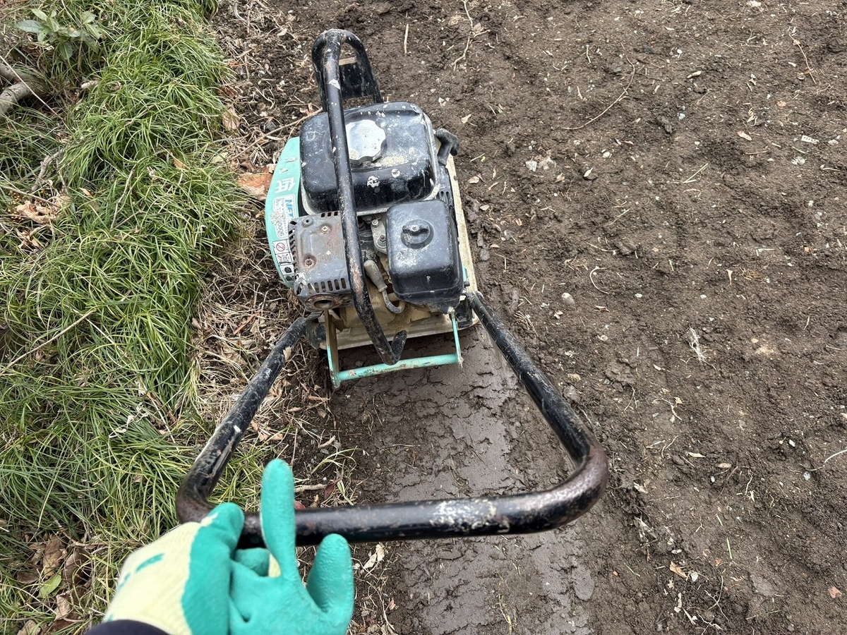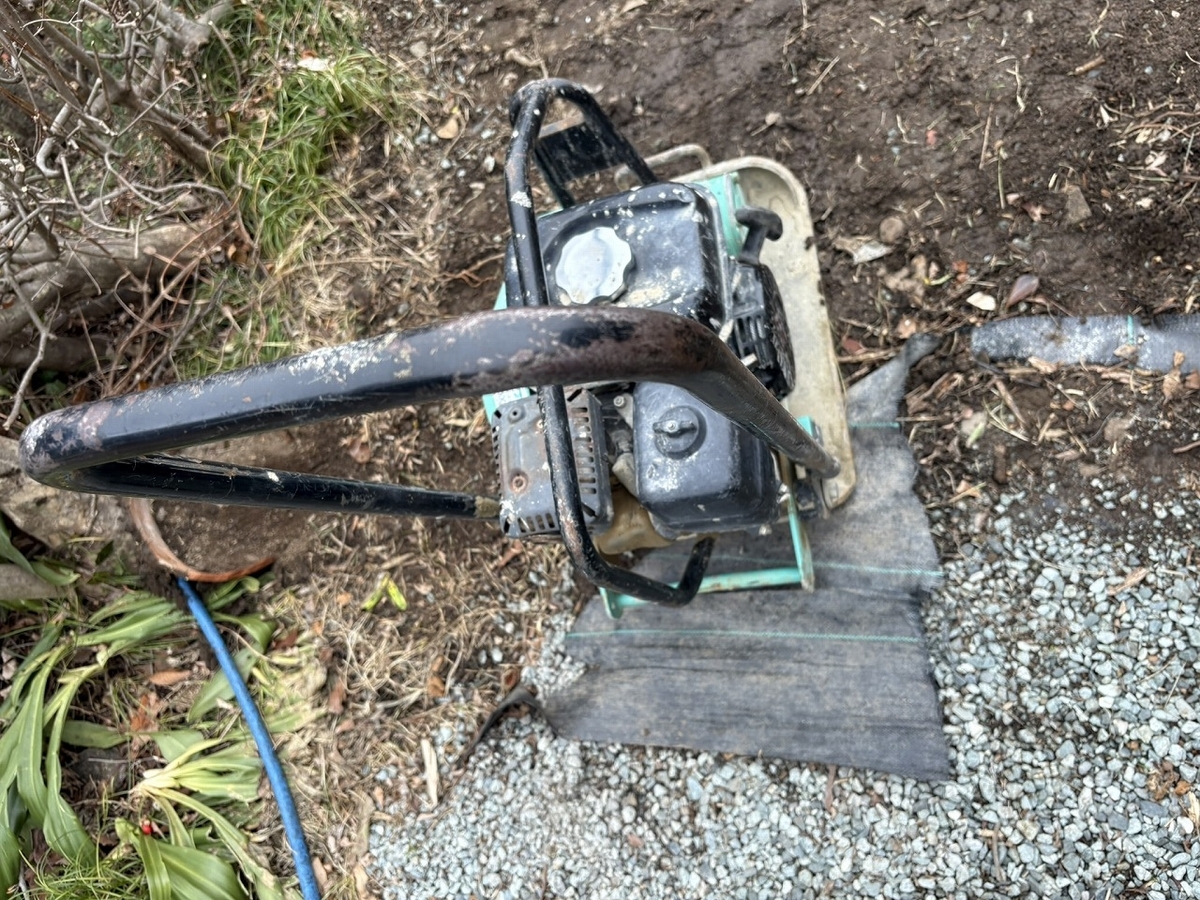 親戚の土建業の方に地面を固めるプレートという機材をお借りしてきました。