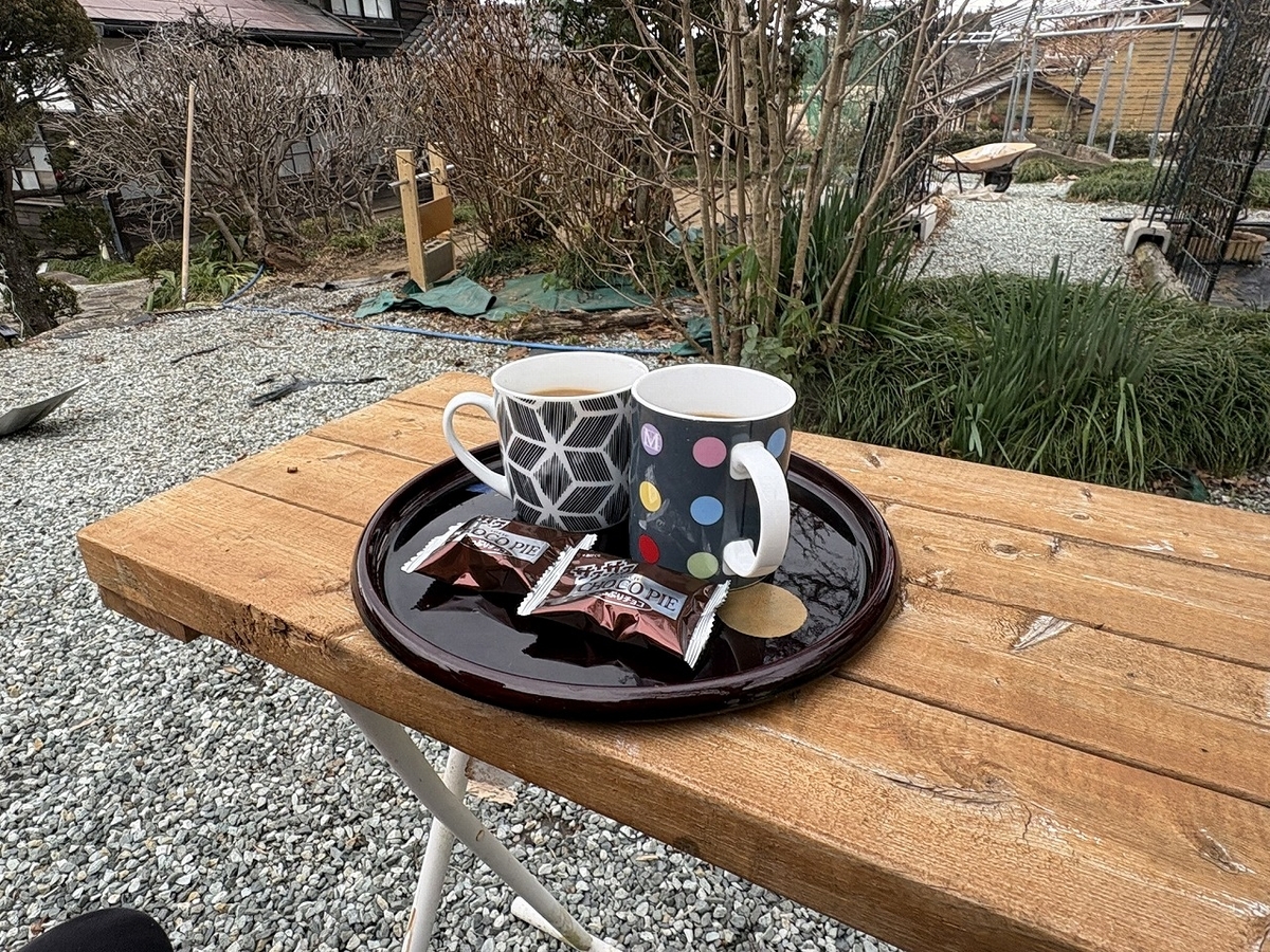 それではコーヒーブレイクの後、弦バラのネットを設置します。