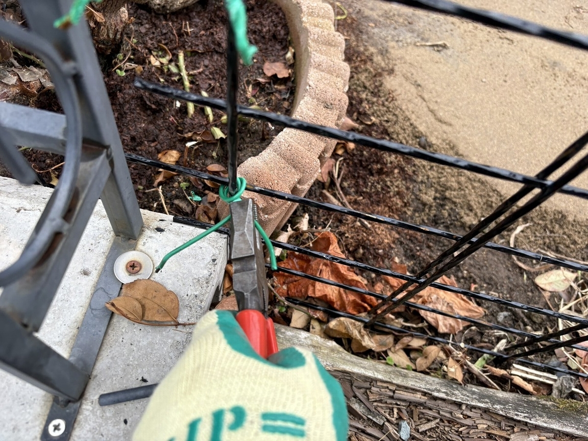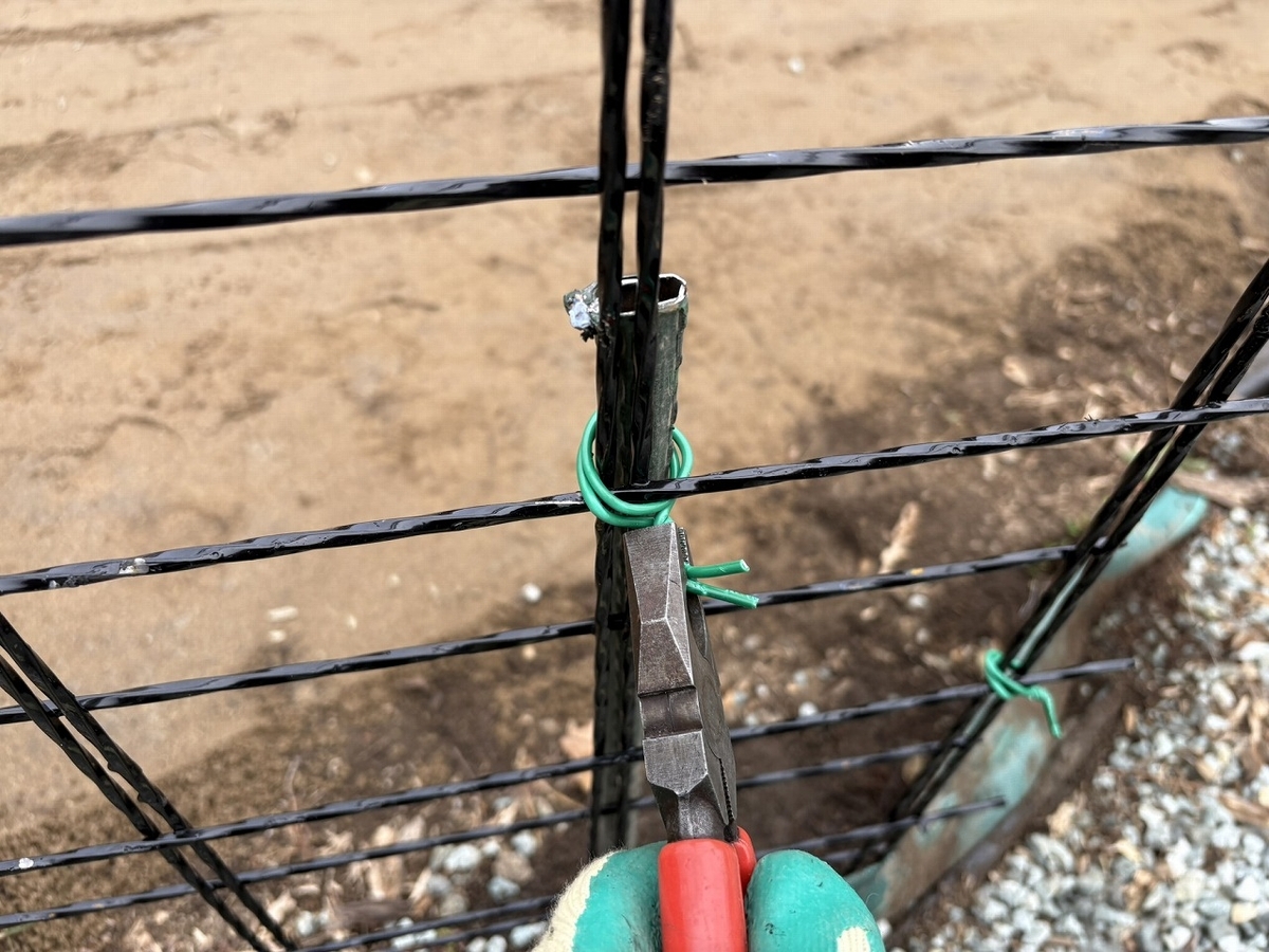 このネットは、コンクリートの鉄筋に使用するものですが、それに先日カミさんがブラック塗装したものです。