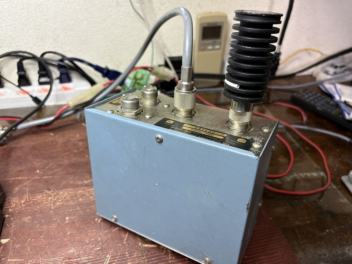 送信パワーを見るためにSWR計を接続しますが、故障品をいきなりアンテナに接続出来ませんので、SWR軽にのOUTにはアンテナの代わりにダミーロードを接続します。