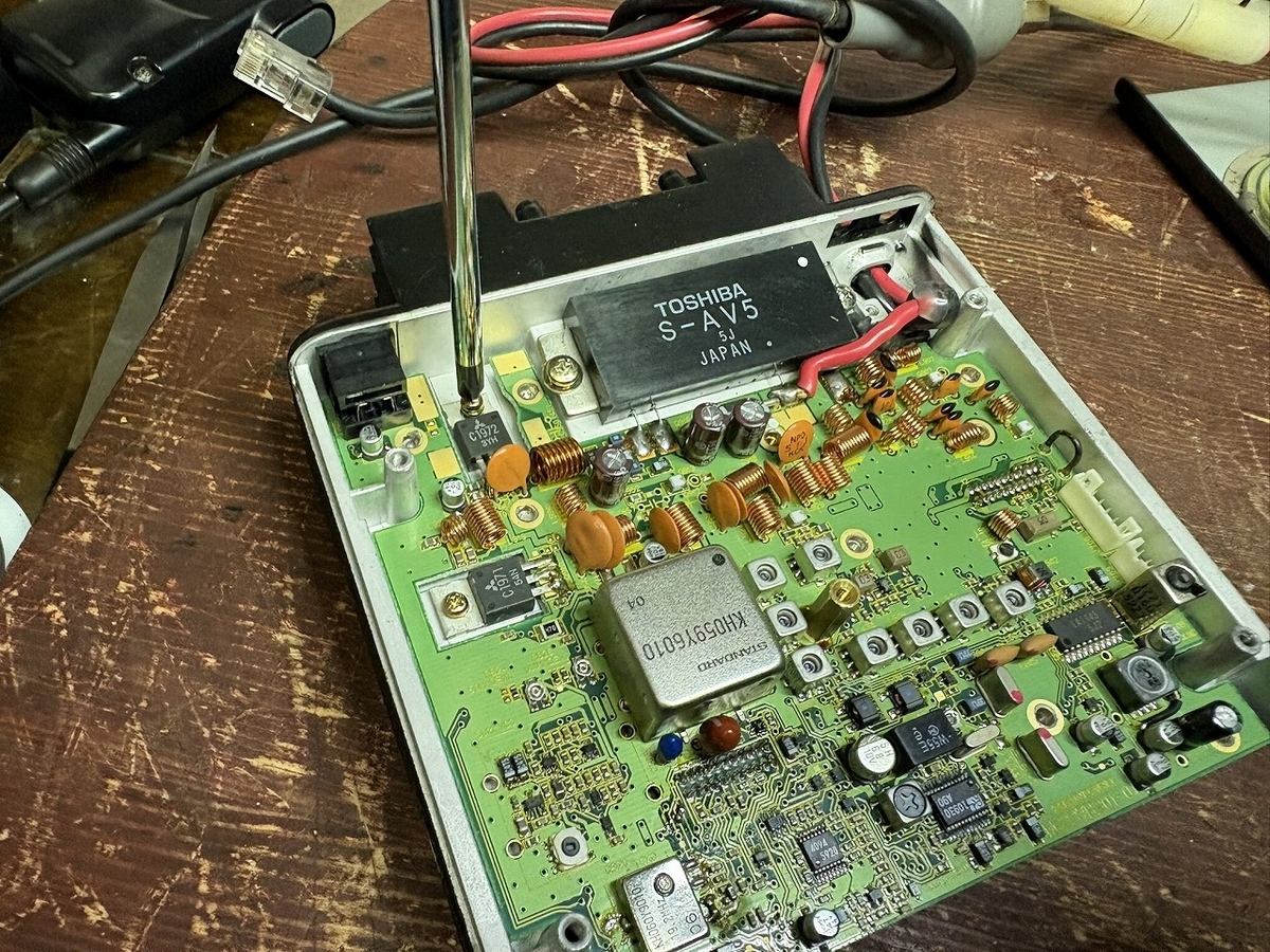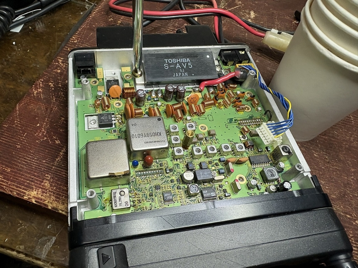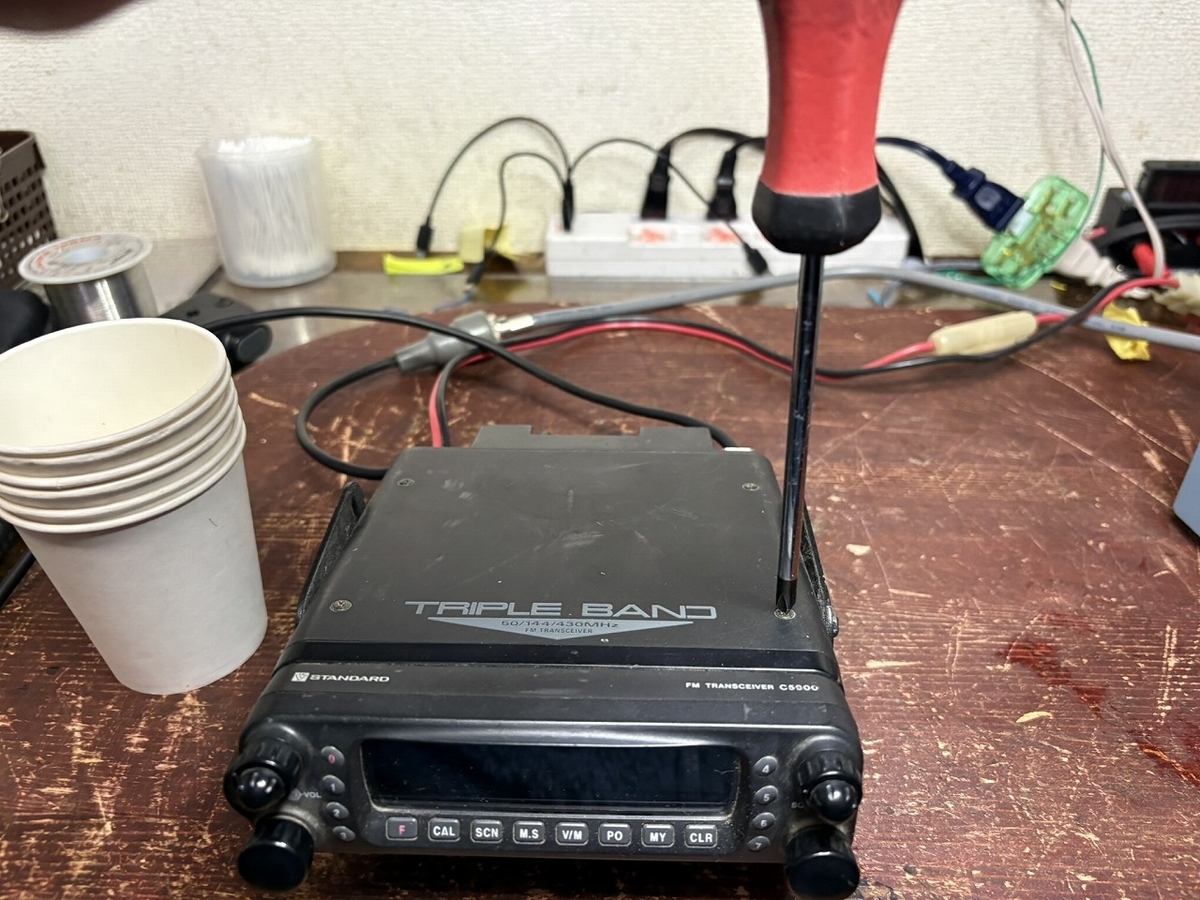 さて、今日の話題は修理ライフですが、今回はオーディオではなく、無線機の修理です。ローカル局のSugiさんからの依頼で STANDARDのトリプルバンドモービル機 C-5900の修理です。今回はその1で動作確認と故障の原因の追究、そして、第一次の処置です。