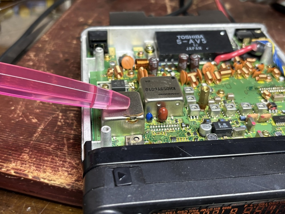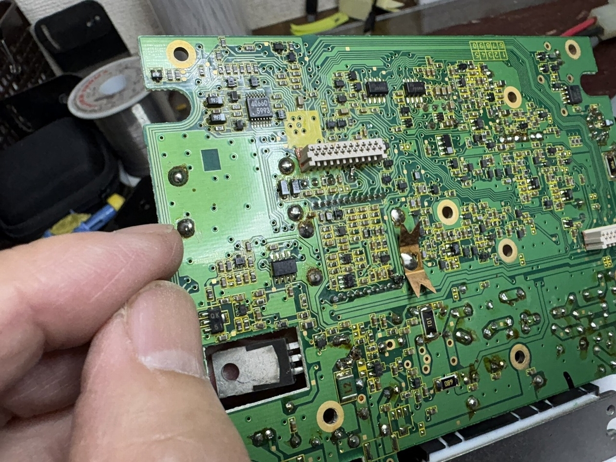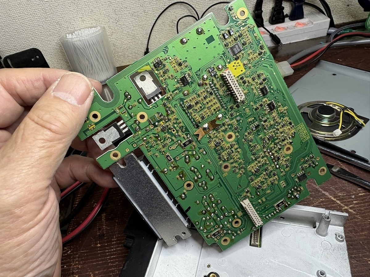 場所が特定出来ましたので、今度は基板を外し、基板上の金属ケースも外し、その中の原因を探します。
