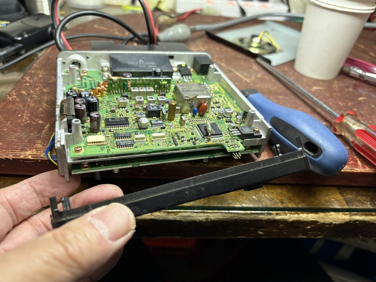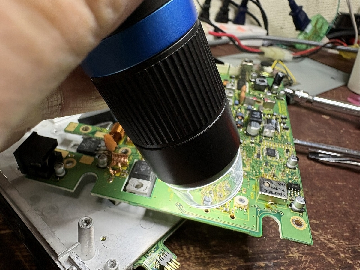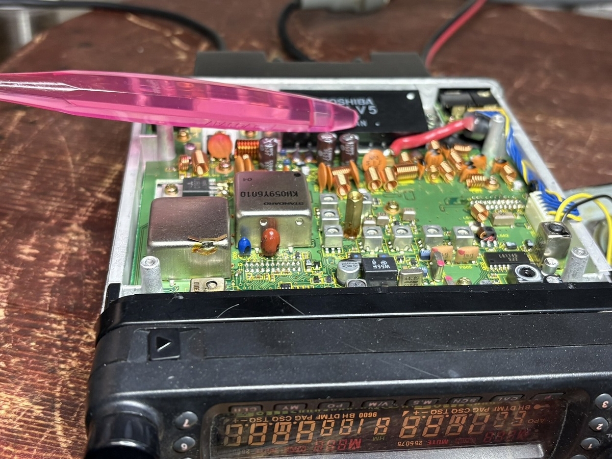 場所が特定出来ましたので、今度は基板を外し、基板上の金属ケースも外し、その中の原因を探します。